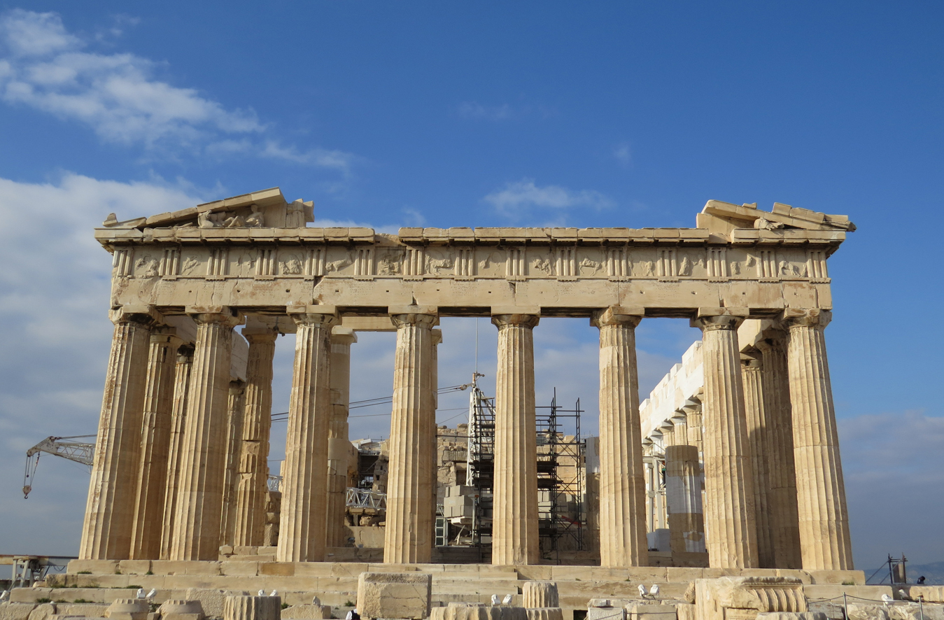 Yapının içine girilmiyor, etrafında turlayabiliyorsunuz. Yapının bütünündeki etkileyiciliğinin yanısıra Antik Yunan’ın önemli bir inşa tekniği olan “enthasis” de Parthenon’un önemli özelliklerinden biri. Gözün büyük yapılardaki perspektif deformasyonlarından dolayı yapının ideal ortagonal olarak algılanamamasına karşı Antik Yunan mimarları bazı anıtsal yapıları bu deformasyonun tersi bir deformasyonla inşa etmişler. Yani göz yakından bakılan büyük bir cepheyi “içerlek” olarak göreceği için yapı çok hafif biçimde “dışarlak” olarak inşa edilmiş. Dolayısıyla bu ikisi birbirini götürünce yapının ideal ortagonal olarak algılanacağı düşünülmüş. Bu nedenle yapının cepheleri ortasından köşelere doğru ortası biraz daha yüksek olacak şekilde bombeli olarak inşa edilmiş. Yine kütle de yukarıya çıktıkça geriye doğru çekilerek inşa edilmiş. Öyle ki Parthenon’un aslında tek bir 90 derecelik açısı olmadığı söylenir. Tabi tüm bu bilinçli deformasyonlar, yani “enthasis” santimler mertebesinde olduğu için algılamak çok kolay değil.