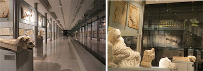 En üst kattaki salon yapının genel geometrisinden ayrılarak Parthenon yani “Bakire Athena Tapınağı” ile aynı doğrultuda tasarlanmış. Bu katta iç kısımda Parthenon’un hikayesinin anlatıldığı bir belgesel sürekli dönerken çeperde de Parthenon’un frizlerinden geriye kalanlar ve İngiltere’ye kaçırılanların kopyaları sergileniyor. tamamen cam cephelerden bazen Parthenon’u bazen de Atina’nın modern dokusunu frizlerle aynı anda görmek inanılmaz etkileyici bir atmosfer sağlıyor doğrusu.