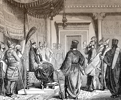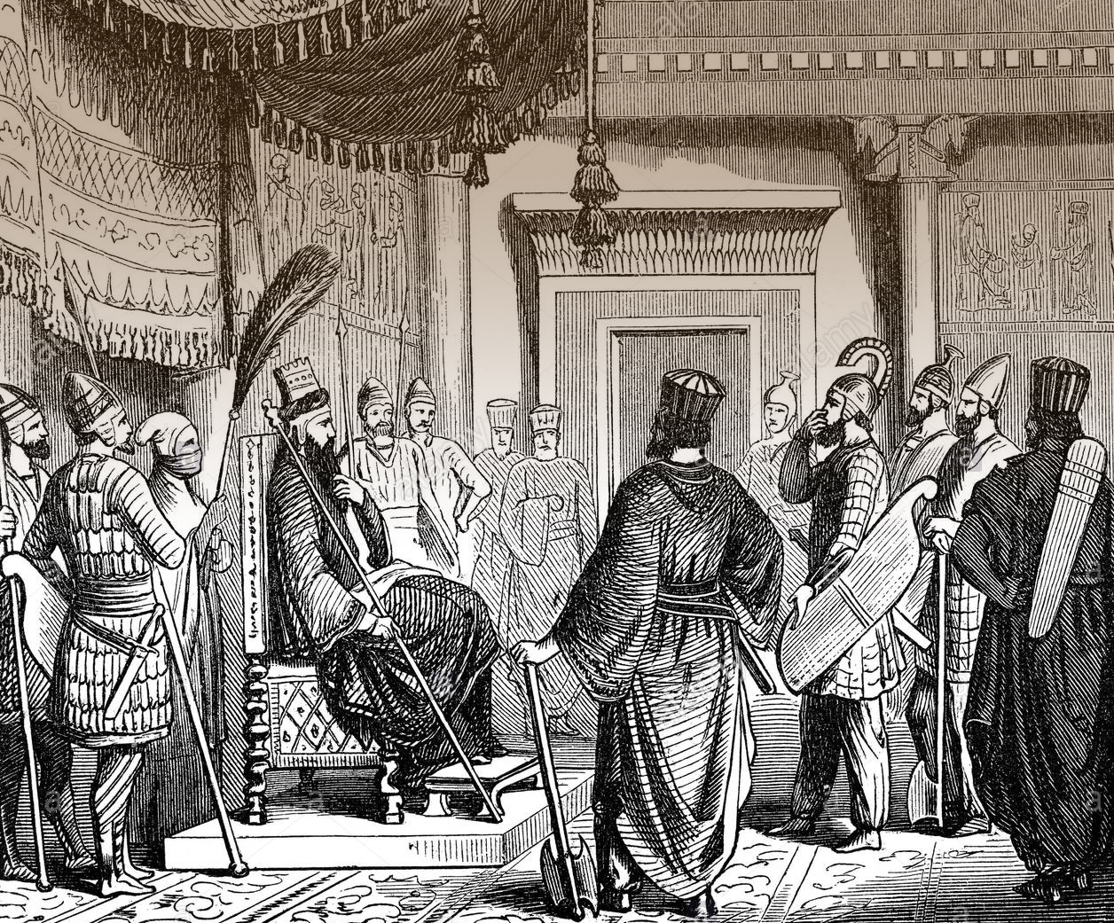 | Pers Kralı Kyros elçileri kabul ediyor. |