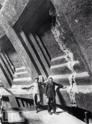 | Pantheon’daki çatlakların incelenmesi. Kasetlerin boyutlarının muazzamlığı bu fotoğraftan anlaşılıyor. |