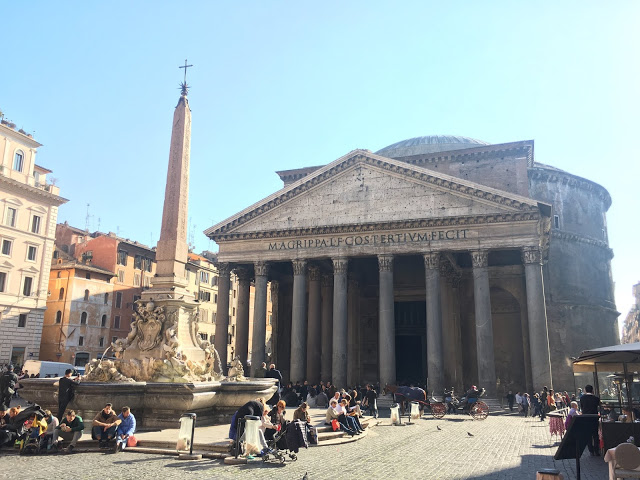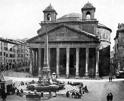 | Pantheon ve önündeki meydanda havuz ve dikilitaş. |