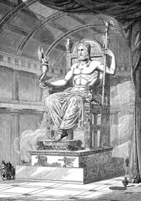 Olimpia Zeus Tapınağı’ndaki Zeus heykelinin tahmini bir çizimi.