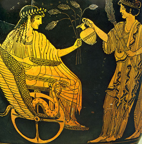 Bir 5. yüzyıl vazosunda elinde başak demeti ile Demeter.