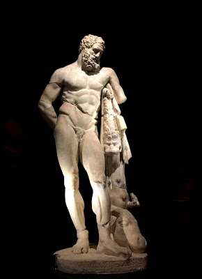 Aslen bir tanrı değil kahraman olan ancak ölümünden sonra Olimpos’a çıkarılan Herakles de sanat eserlerinde sıklıkla karşılaşılan bir figürdür. Genelde atribuları başardığı 12 görevi ile ilgilidir. En başta, karikatürlerdeki mağara adamlarının silahlarını hatırlatan kaba-saba odun parçası ile tanınır. Ayrıca işlerinden birinde öldürdüğü aslan postu da sıklıkla tek giysisidir. Kaba gücü temsil ettiği için oldukça kaslı bir vücudu vardır.