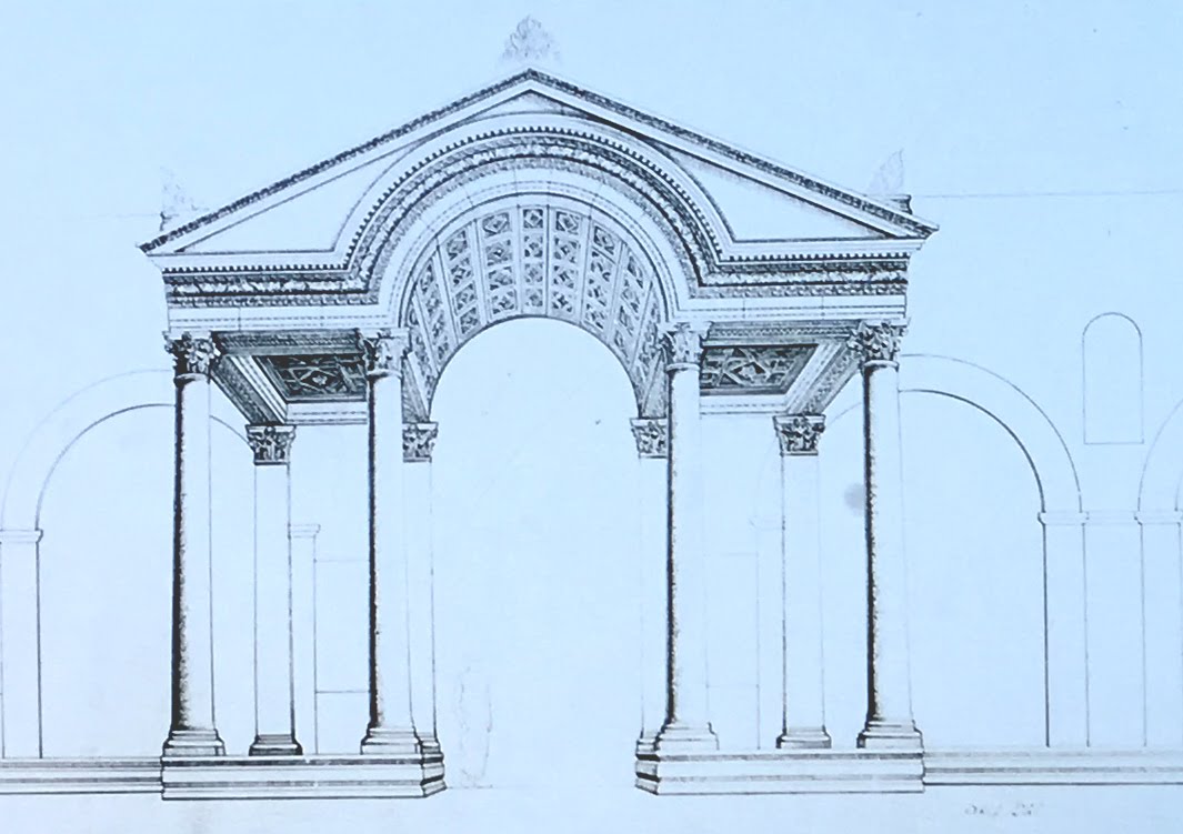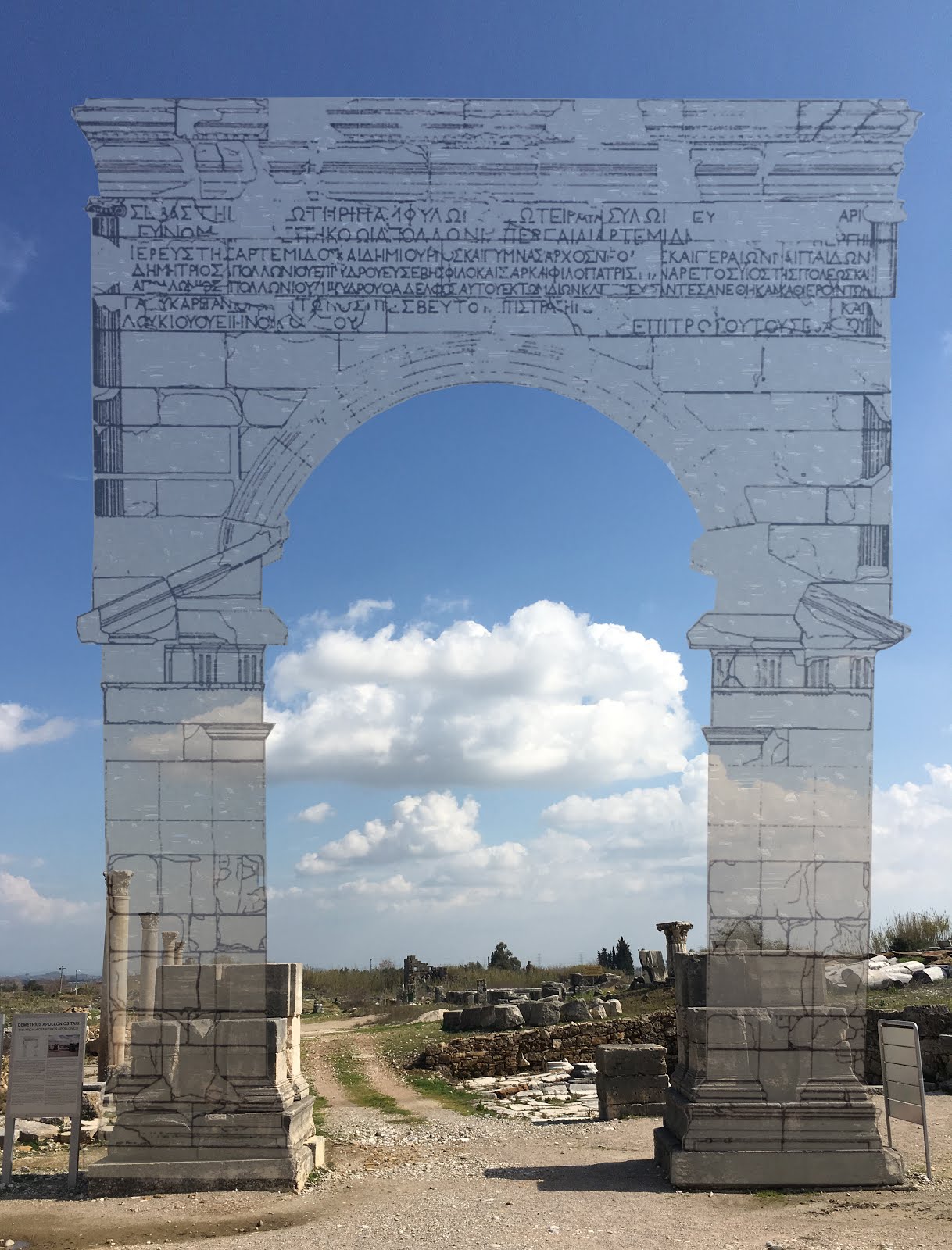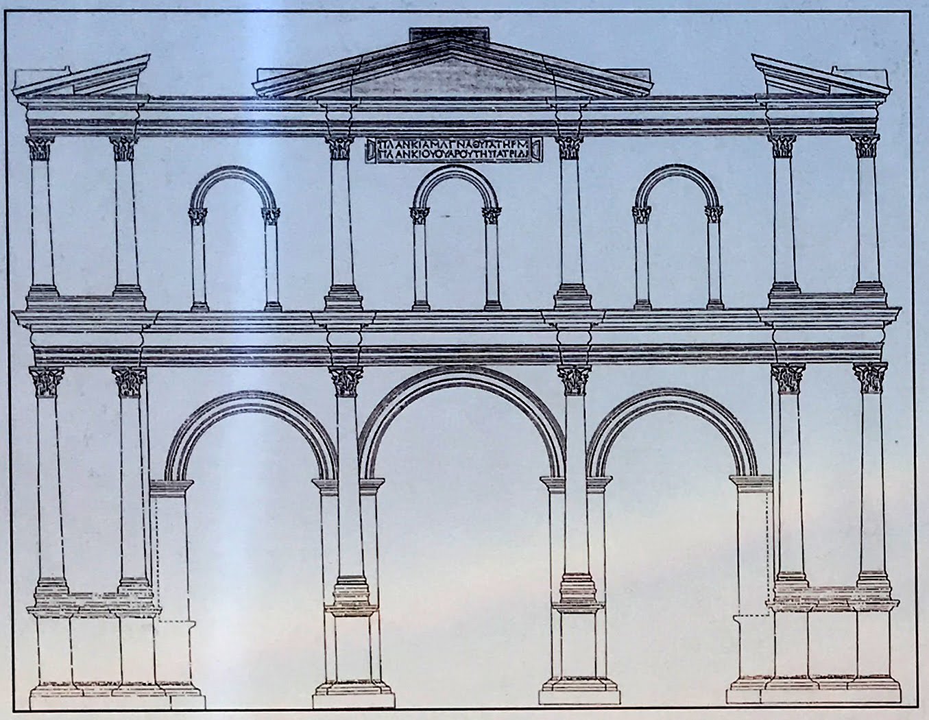 | Hadrianus Takı’nın restitüsyonu. (Kazı alanındaki levhadan) |
