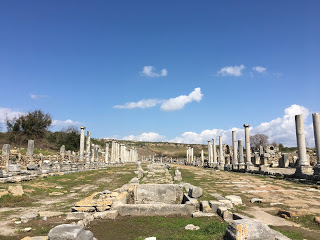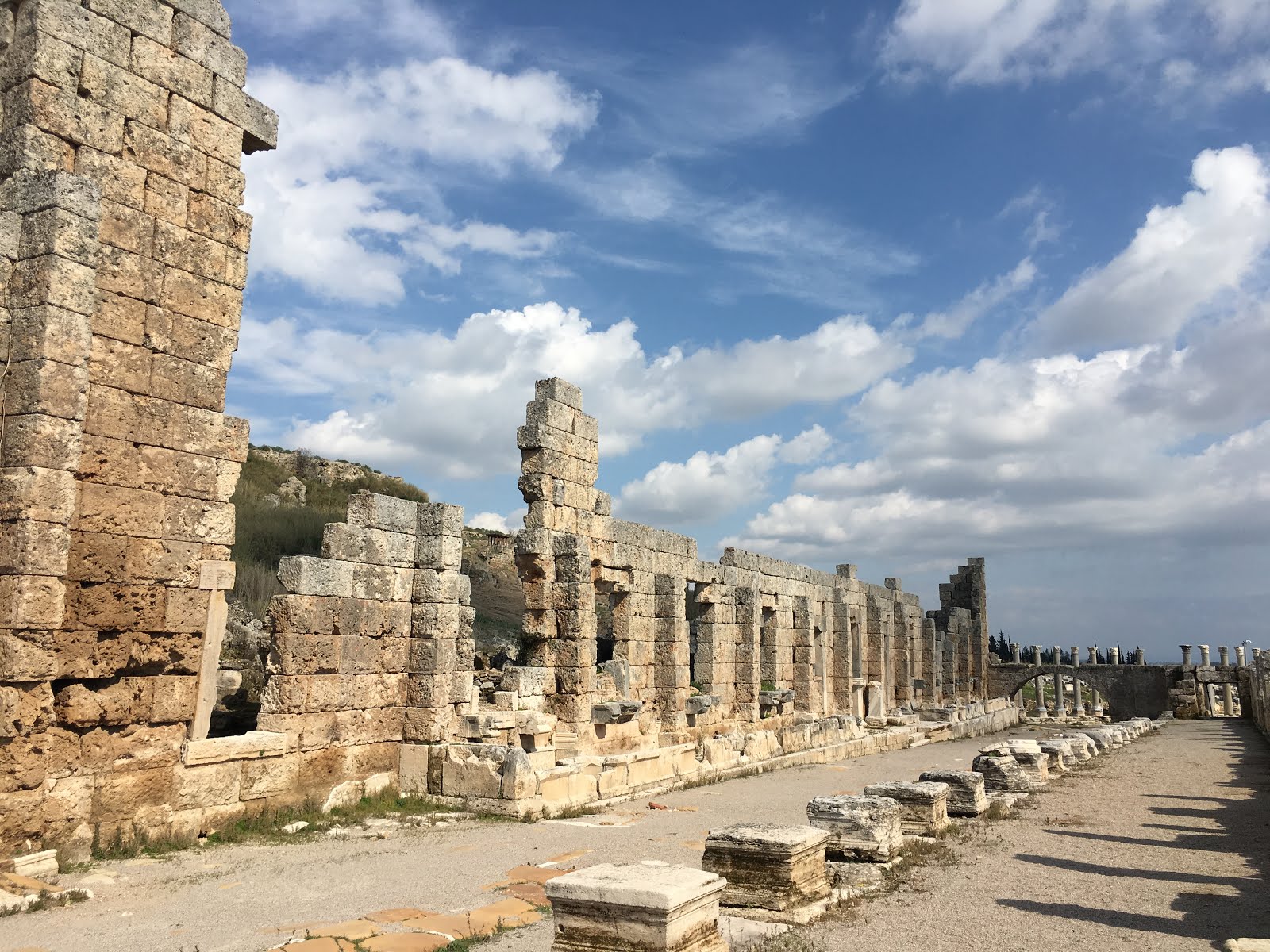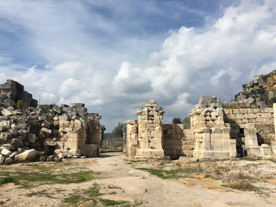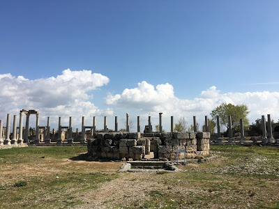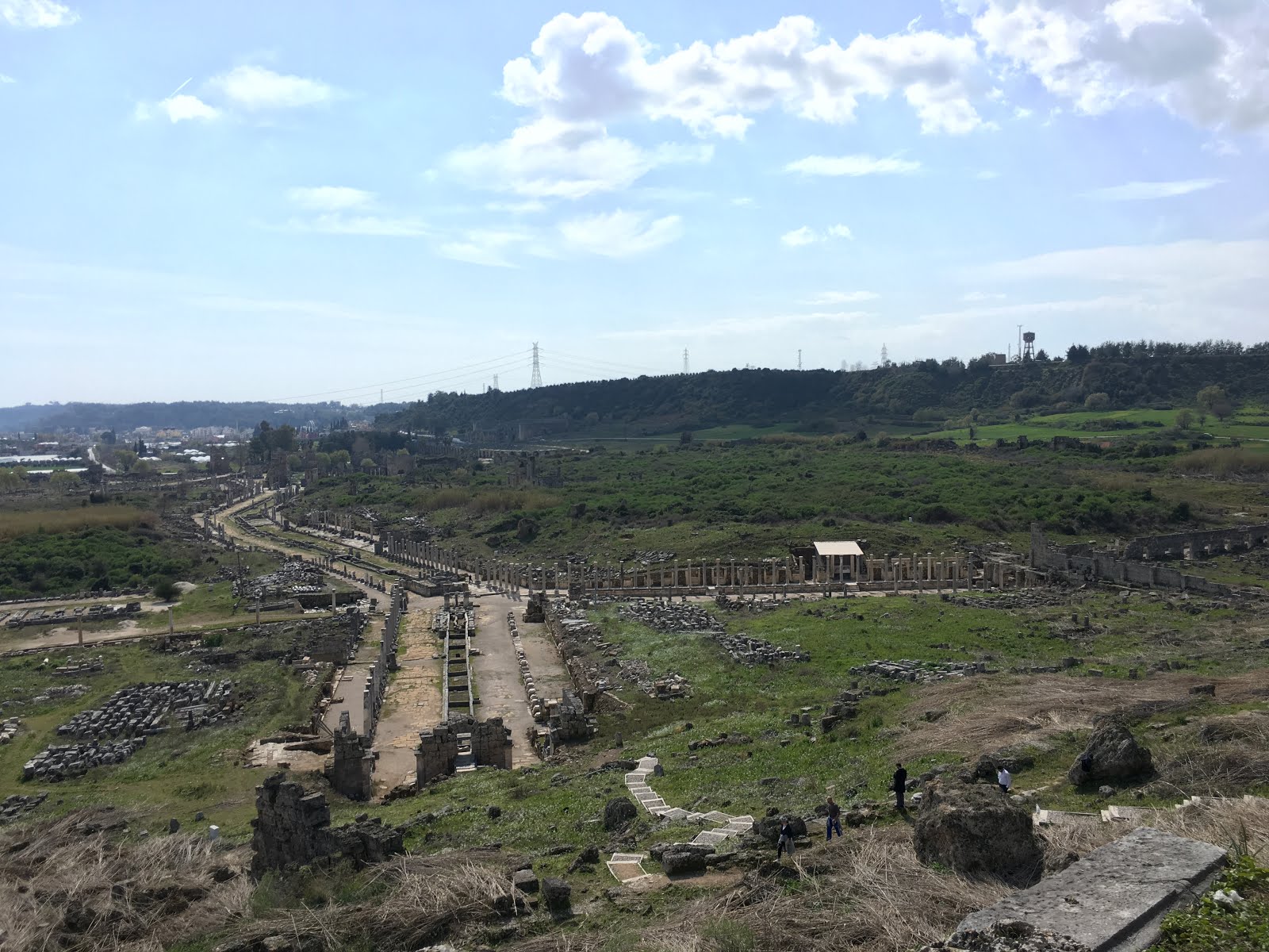 | Hadrianus Takı’ndan geriye kalanların arasından geçip Sütunlu Cadde’ye çıkıyoruz. |