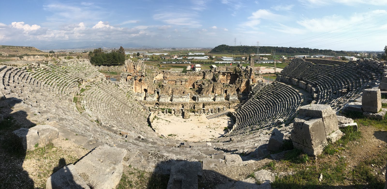 Perge tiyatrosu gördüğüm en iyi durumdaki, dolayısıyla en fotojenik tiyatrolardan birisi. Yoğun bir gezi sonrası uzun süre basamaklarında oturup Antik dünyayı hayal etmek için ideal.