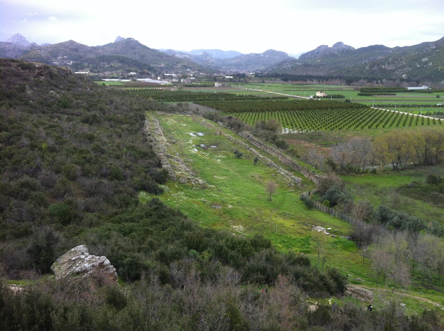 StadyumKentin tiyatro dışındaki yapılarını barındıran bölgelerse tiyatronun yaslandığı tepenin üstünde. Bu alana, tiyatronun sağından bir yokuşla varıyoruz. Agoraya çıkmadan sağ tarafta stadyumu göreceksiniz. Stadyum MS 2. yüzyılda inşa edilmiş. U biçimindeki yapının 220 metre uzunluğu, 30 metre genişliği var ve yaklaşık 8.000 kişilik olduğu tahmin ediliyor (web5).