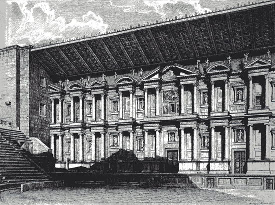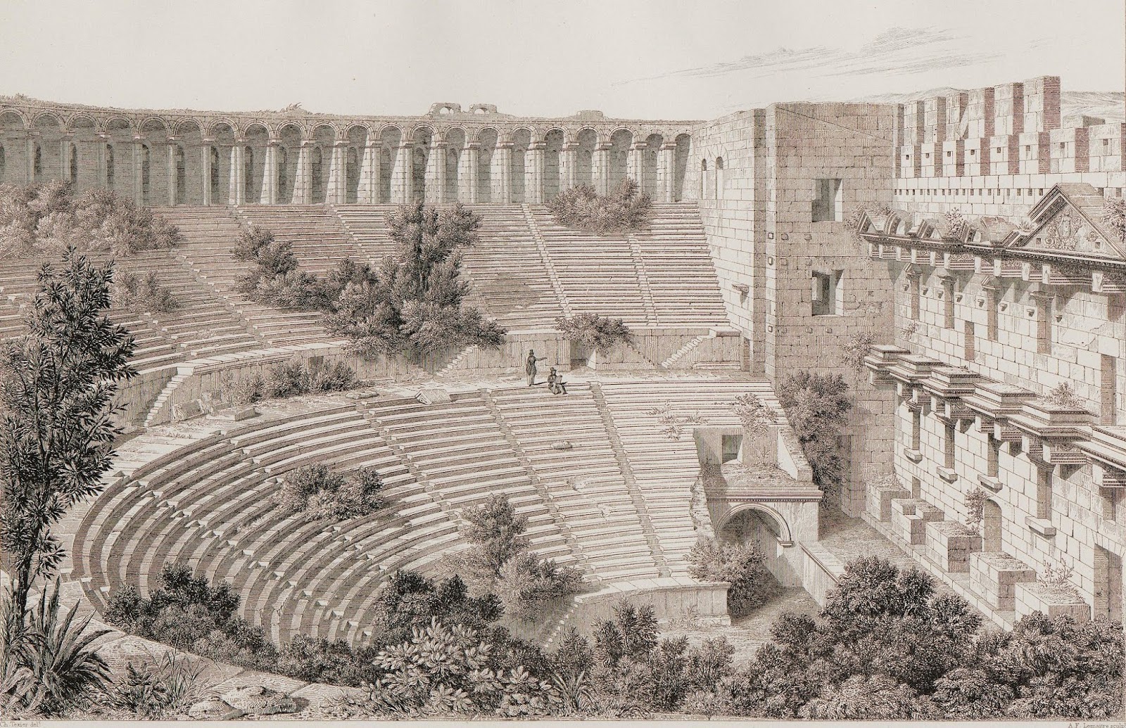 | Tiyatronun 19. yüzyıldaki halinin Charles Texier’e ait bir çizimi (Texier, 1865). |