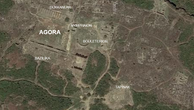 Neredeyse her yapının konglomeradan inşa edildiği Antik dönemin kent merkezi olan Agora’da bazilika, anıtsal çeşme, oditoryum veya meclis binası (bouleiterion), mağazalar denen kısım, exedra denen yapı ve Helenistik tapınak yer alıyor.