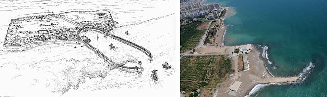 Çizimden anladığımız kadarıyla sütunlu yol elips şeklindeki limanın tam ortasına çıkıyor. İki yandan simetrik olarak denize uzanan dalgakıranların izleri bugün de görülüyor. Ancak ne yazık ki ne bir bilgilendirme tabelası ne de koruma önlemi var dalgakıranlarda. Hatta dalgakıranlardan doğu tarafındakinin algısını tamamen bozacak şekilde (heryerde moda olan) “I Love Mezitli” şeysi konmuş. Soli antik kentini bu kadar umursamadan Mezitli’yi sevmek mümkün mü? Zannetmiyorum. Bu “I Love …” şeyleri tamamen kentlerin sosyal medyada reklamlarının yapılmasını amaçlayan şeyler. Bu kadar sığ bir şeyin bir yeri sevmekle ilgisi olabilir mi, emin değilim.