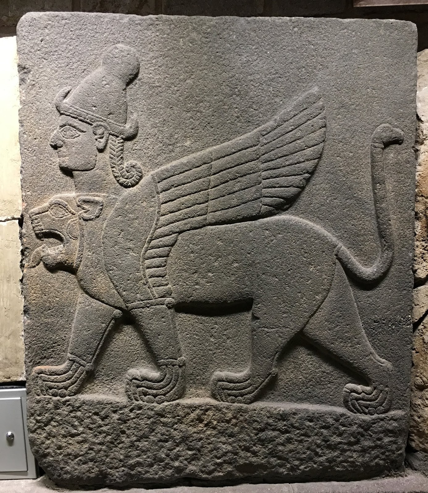 Evet, tarihteki ilk çiftetelli diye kötü bir espri ile başlayabiliriz bu ortostatı yorumlamaya. Burada aslında çok ilginç, çok sık rastlanmayan bir sfenks temsili var. Bu sefer vücut insan, başlar kuş olarak ve kanatlı biçimde temsil edilmişler. Gerçi bunlara sfenks demek çok doğru da olmayabilir. Sanki Mısır’ın hayvan başlı tanrılarına da benziyorlar. Belki kuş başlı özel bir tanrı da olabilir bunlar. Tabi Hititlerle Mısırlılar yakın temas halinde. Belki onların tanrılarından kopya çekmiş olabilir Hititler.