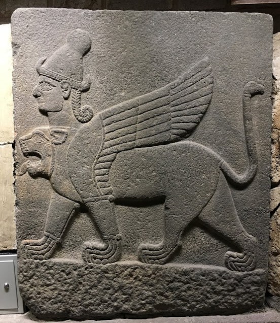 Bir sfenks. Ya da grifon da deniyor. Genelde Mısır’ın piramitlerini koruyan devasa boyutlardaki örneği nedeni ile meşhur olan bu mitolojik yaratık bir çok eski çağ toplumunun dininde ve sanatında bulunur. Hangisi hangisinden aldı bilinmez tabi. Ama şu kesin ki Yunanlıların sfenksleri bu Yakındoğu toplumlarından (muhtemelen Mısırlılardan) almışlardır. Hatta hemen ona ünlü bir mit olan (Freud abinin kulakları çınlasın) Oedipus mitinde önemli bir rol de vermişlerdir.