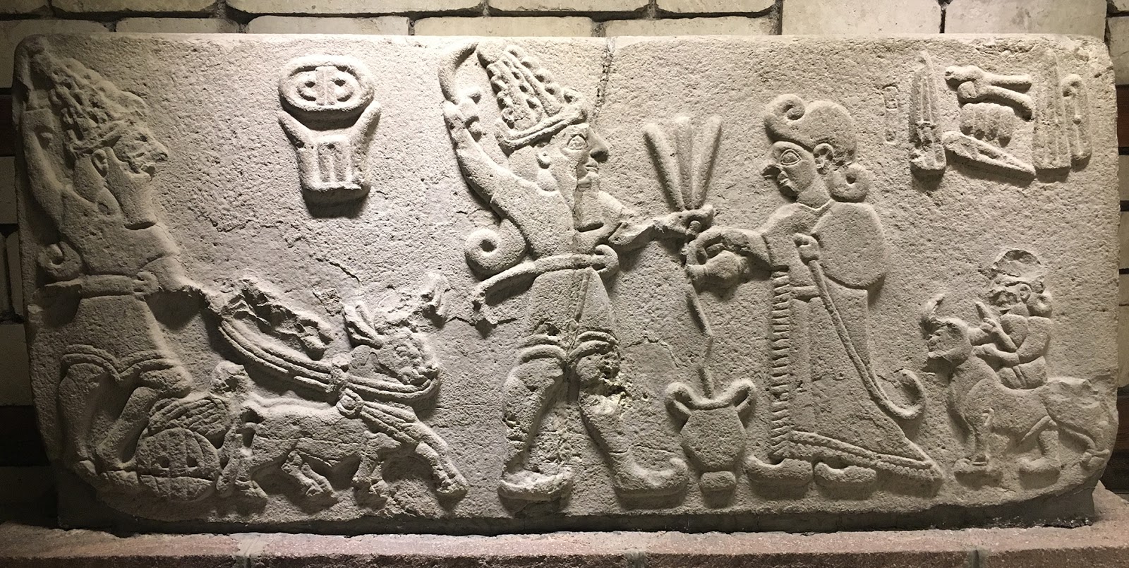 Burada dönenler konusunda hiç bir fikrim yok ama haşmetlerine bakılırsa herhalde bunlar tanrılar olmalı. En solda atlı bir savaş arabası ile kılıcıyla ortama dalan bir abi görülüyor. Ortada ise bir sunu kabına kutsal sıvı döken bir tanrıça soldaysa yine kılıcını kaldırmış boynuzlu hacivat şapkasıyla bir abi. Şimdi bunlar tanrılar olmayabilir. Çünkü tanrılar adak sunmaz. Bunlar acaba tanrılara adakta bulunan kral ve kraliçe olmasın? O da olabilir bak. Yalnız sağdaki kadın gibi görünüyor ama o da kesin değil. Bir rahip de olabilir. Başa dönecek olursak sadece burada bir sunu töreni olduğunu anlayabiliyoruz.