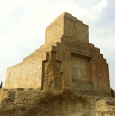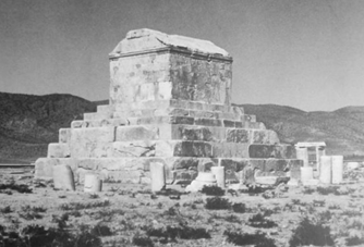 Podyumlu mezar anıtlarının en erken örnekleri arasında yapım tarihinin ve sahibinin kesin olarak bilindiği ve günümüze diğerlerine göre daha sağlam olarak kalabilmiş olanı Pers Kralı II. Kyros’un Pasargadae’deki mezarıdır (Resim 5-6).