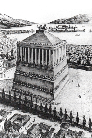Bu yüzyılda güçlenen Anadolulu yerel beyler doğu ve batıdaki kültürlerden etkilenmiş, onların yöneticilere özenmişlerdir. M.Ö. 4. yüzyılın Pasargadae’sindeki en gözalıcı anıt olan II. Kyros’un mezarından haberdar olan Maussollos’un kendi anıt mezarı için de benzer bir form ya da en azından anıtsallık istemesi olasıdır. Yine Halikarnassos’un yakın çevresinde yukarıda sıralanan örneklerden ilham alıp nitelik ve nicelik olarak bunları aşacak bir mezar anıtı amaçlamış olmalıdır. Maussollos’un hayattayken anıt mezarı için yer ayırdığı ve inşaatı başlattığı bilinmektedir (Jeppesen, 1981). Basamaklı podyum, anıtın düz podyumlu olarak inşaatının başlamış olmasından ya da İran’daki anıttan çok daha büyük boyutta olması amaçlandığından Maussolleion’un zemininde uygulanamamış ve yapı düz –veya kademeli- podyumun üzerine oturtulmuş basamaklı podyum ise hem yapının çatısı, hem de en üste yerleştirilen atlı heykelinin podyumu olarak uyarlanmış olabilir. Antik dünyanın en görkemli anıtlarından biri olan bu yapı izleyen yüzyıllardaki mezar anıtları için de bir model olmuş ve basamaklı podyum uzun süre yapılarda kullanılmıştır. Böylece Anadolu’dan çıkan bu form yaklaşık 200 yıl sonra tekrar Anadolu’ya dönmüş gibi görünmektedir.