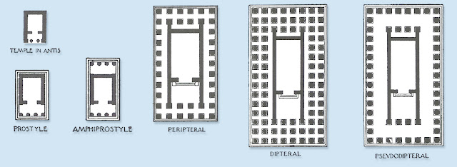 Tapınaklar hemen aşağıdaki görselde gördüğünüz gibi çevresindeki sütun dizilerinin durumuna göre adlandırılırdı. Şimdi bunları kısaca tanıyalım: