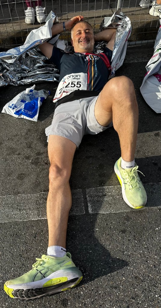 Neyse, 4 saat altı olmadı tabi. 4:48 gibi bir süreyle bitirdim ilk maratonumu. Bitirdikten sonra ise kelimenin tam anlamıyla yere yığıldım. Madalyayı filan aldıktan sonra önce oturdum bir yere ama ardından tansiyonumun düşmeye başladığını fark edince yattım. 10-15 dakika yatınca kendime geldim ama kramplar yaklaşık 1 saat daha sürdü. Otursam ayrı dert, kalksam ayrı dert…