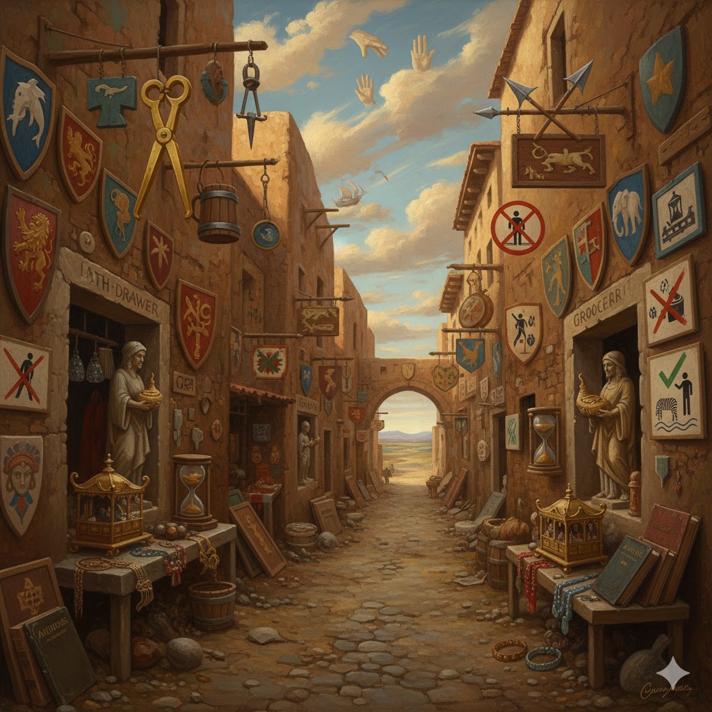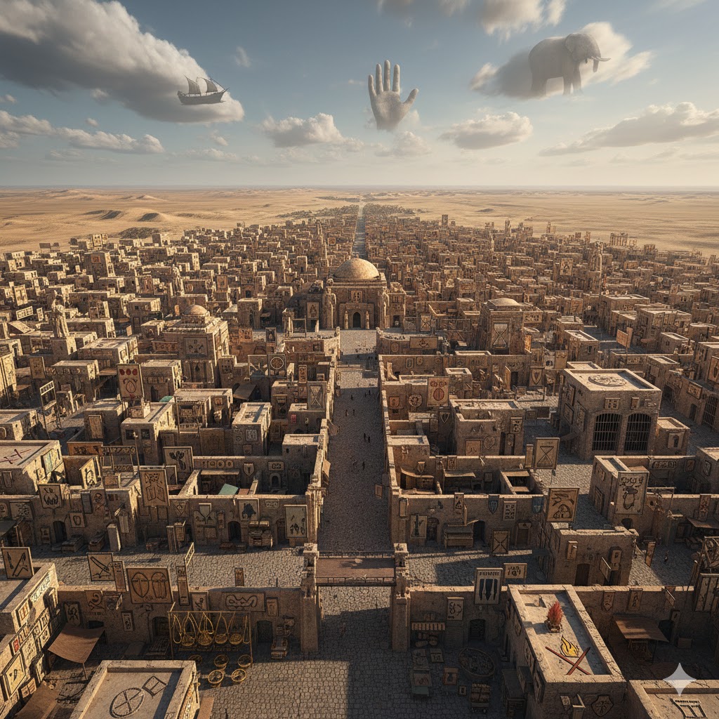 Eventually, the traveler realizes that in Hypatia, the meaning of everything has been shifted. To understand the city, one must learn that a sign does not represent what it seems to be, but rather its opposite or something entirely unrelated. The logic of the city is built on this web of visual deceptions, where the truth is hidden behind a mask of contradictory symbols.”