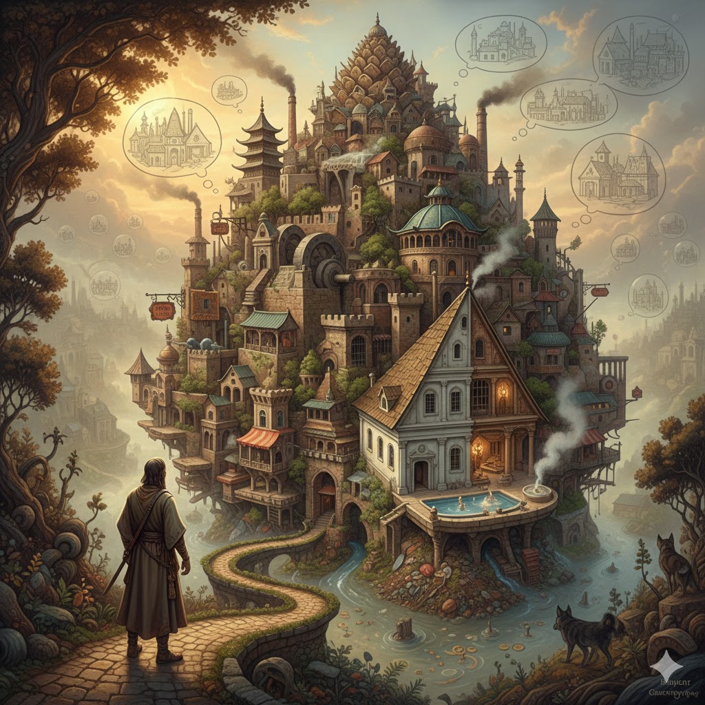 Aşağıya kentlerin tariflerini ve yapay zeka üretimi görsellerini koyacağım… Sonra belki üstüne yazarım bir şeyler.