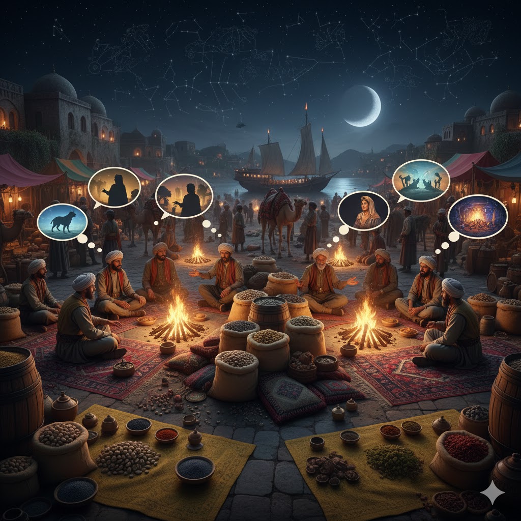 You do not come to Euphemia only to buy and sell, but also because at night, by the fires all around the market, seated on sacks or barrels or stretched out on piles of carpets, at each word that one man says—such as “wolf,” “sister,” “hidden treasure,” “battle,” “scabies,” “lovers”—the others tell, each one, his tale of wolves, sisters, treasures, scabies, lovers, battles. And you know that in the long journey ahead of you, when to keep awake against the camel’s swaying or the junk’s rocking, you start summoning up your memories one by one, your wolf will have become another wolf, your sister a different sister, your battle other battles, on your return from Euphemia, the city where memory is traded at every solstice and at every equinox.”